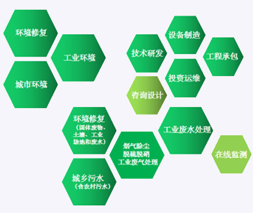 目前,公司已形成了以城市環境、工業環境和環境修復為主的三大經營體系,專注于城鄉污水(含農村污水)和工業廢水處理、工業廢氣處理、環境修復(固體廢物、土壤、工業場地和水體)等污染技術和治理服務。服務產品分五大系列:咨詢設計、承包運營、環保設備制造、投資運營管理和技術研發,形成以咨詢設計承包為重點系列、技術研發為輔助系列、環保設備制造為防御系列、投資建設和運營管理為潛力系列的全產業鏈、多元化服務結構,在環保處理領域中為客戶提供全面的“一站式”服務及整體環境解決方案。